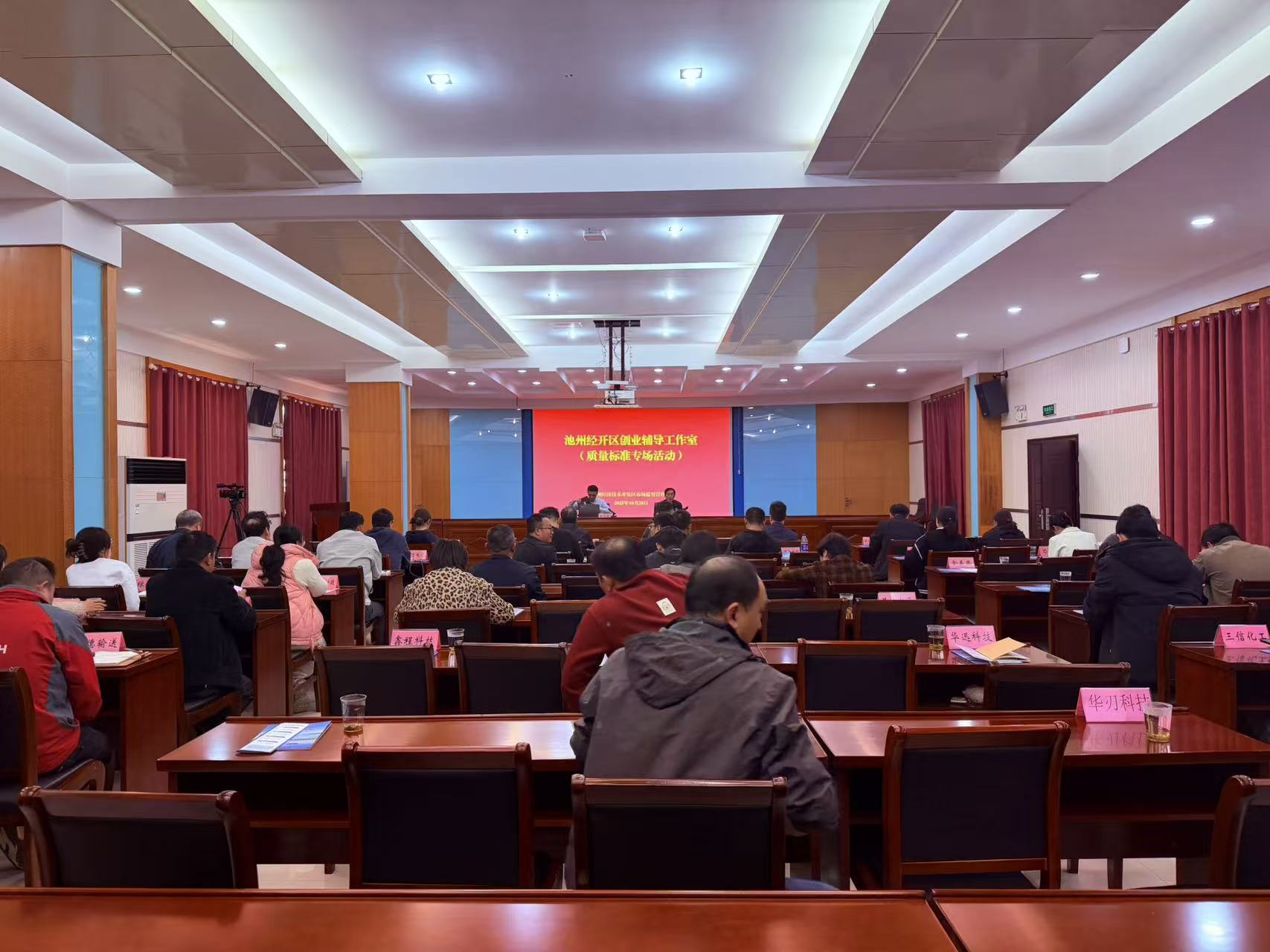10月28日,我公司受池州经济技术开发区市场监督管理局委托,成功承办2025年“池州经开区创业辅导工作室(质量标准专场活动)”暨池州经开区质量标准培训会,钜芯半导体、优拓汽配、安芯电子等30余家企业代表参加。